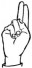 На ћирилици написано ДРИНКА БУГАРИН састоји се из 13 слова [?]. Исписано ћириличном једноручном азбуком за глувонеме: